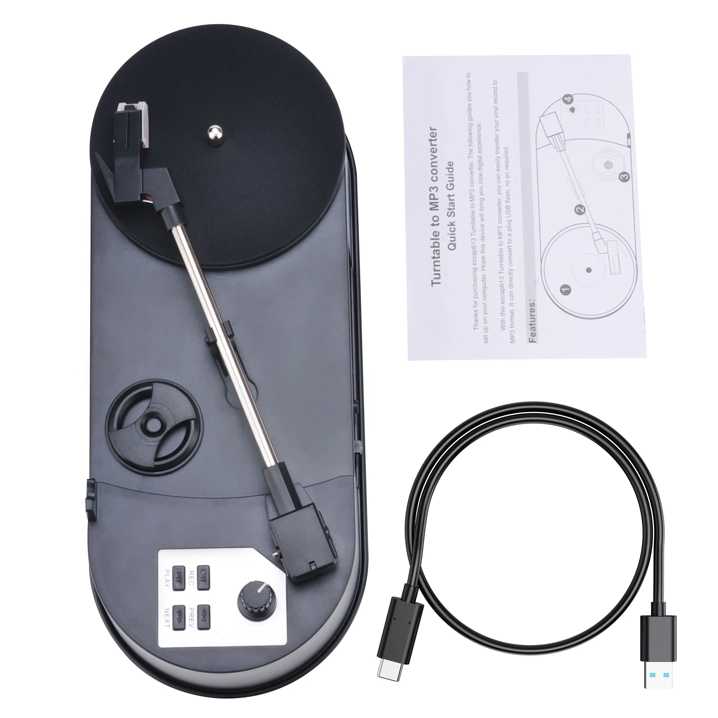 With this ezcap613 Turntable to MP3 converter, you can easily transfer your vinyl record to MP3 format. so can play on your computer,laptop,mobile phones, etc.It can directly convert to a plug USB flash, no pc required.
